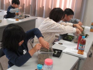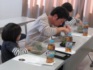 2023年10月29日(日)「レオパの尋屋」の梅田尋平さんのご指導のもと、アクアリウム教室を開催いたしました。今回は子供さんにも多く参加していただき皆さん、おもいおもいの小さな水族館を作成しました。