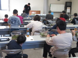 2023年10月29日(日)「レオパの尋屋」の梅田尋平さんのご指導のもと、アクアリウム教室を開催いたしました。今回は子供さんにも多く参加していただき皆さん、おもいおもいの小さな水族館を作成しました。